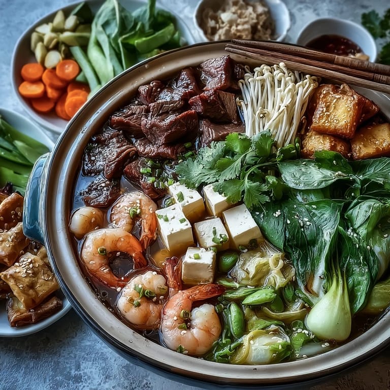 I remember plating everything for a dinner and feeling this quiet satisfaction watching the table fill with small bowls and platters, each ingredient glowing under the warm light. My partner's mom, who usually politely picks at food, actually leaned over the pot with focus, timing her beef slices with the precision of someone who'd suddenly found her favorite sport. By dessert, we'd used nearly everything, and the broth had transformed into this concentrated essence of ginger, garlic, and time well spent together.