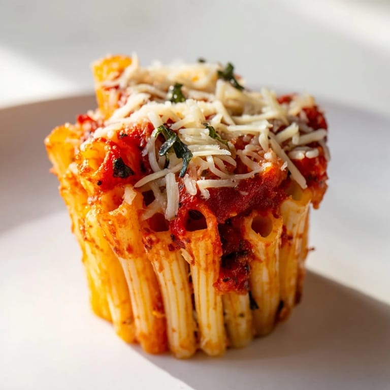 Pin it My nephew's birthday party was pure chaos, the kind where you need food that doesn't require a plate or a fork. I'd made baked ziti a hundred times, but one afternoon I wondered what would happen if I pressed the whole thing into a muffin tin. The result was golden, cheesy cups you could actually hand to a six-year-old without causing a mess—and honestly, they tasted even better than the traditional version, somehow creamier and more decadent in their individual portions.