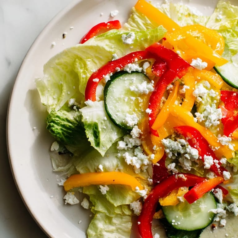 Pin it I discovered this salad on a lazy summer afternoon when my fridge was running low and I had nothing but basics—lettuce, peppers, cucumber, and a block of feta. There was something about the simplicity that felt right, like I was stripping everything back to what actually mattered. The lemon dressing came together in seconds, and the first bite was so crisp and alive that I kept coming back for more. Now whenever I need something that feels both nourishing and effortless, this is what I reach for.