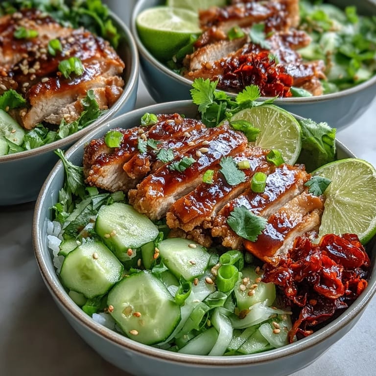The magic of this bowl lives in that moment when warm, crispy, oil-laden chicken meets cold, creamy cucumber salad. The chili crisp doesn't just add heat, it adds richness and texture that makes every bite feel intentional. I used to think spicy and cool couldn't work together, but this dish proved me wrong and changed how I think about seasoning entirely.