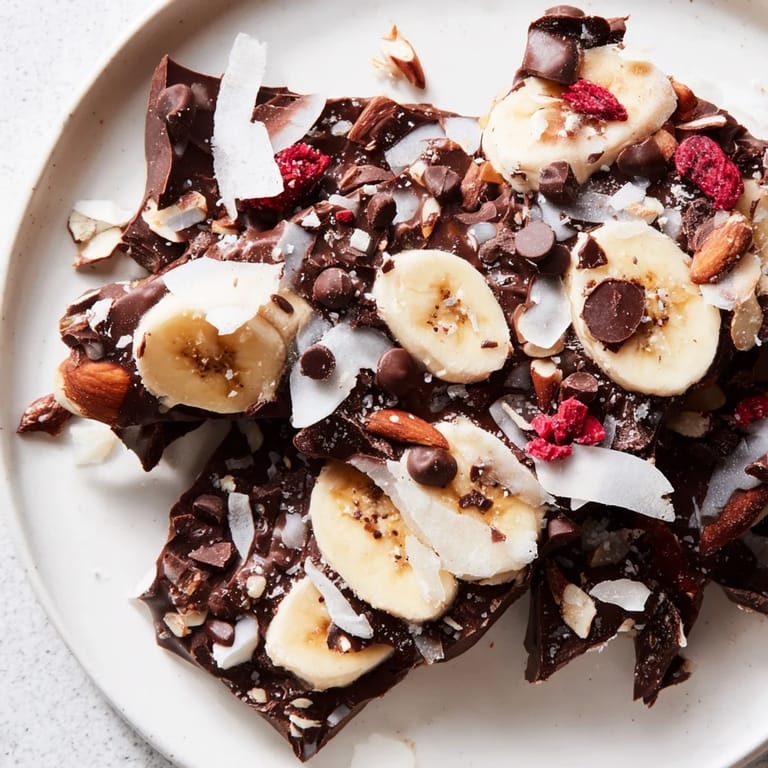Pin it I discovered chocolate banana bark on a sweltering afternoon when my freezer felt like the only refuge in the house. My daughter mentioned craving something cold, sweet, and easy—no baking required. I had three bananas on the counter and a bar of dark chocolate in the pantry, and suddenly this frozen treat came together so naturally that I wondered why I'd never thought of it before. The magic isn't in complexity; it's in how those three simple components transform into something that tastes far more indulgent than it has any right to be.