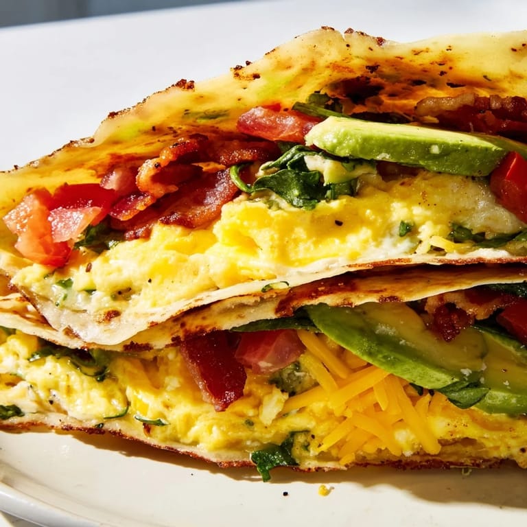 Pin it One Sunday morning, I was rushing to get out the door when I realized I had exactly enough ingredients to make something special—but no time for the usual sit-down breakfast. That's when I remembered a trick my aunt showed me years ago: you don't need a special mold or perfect technique to make a crispy, hand-held wrap that feels like you've actually planned your morning. With just a knife, a tortilla, and a hot skillet, you create this golden, folded pocket that somehow tastes better than the sum of its parts. Eggs, cheese, bacon, and veggies all tucked into neat quarters, then folded and crisped until the outside cracks just right when you bite into it.