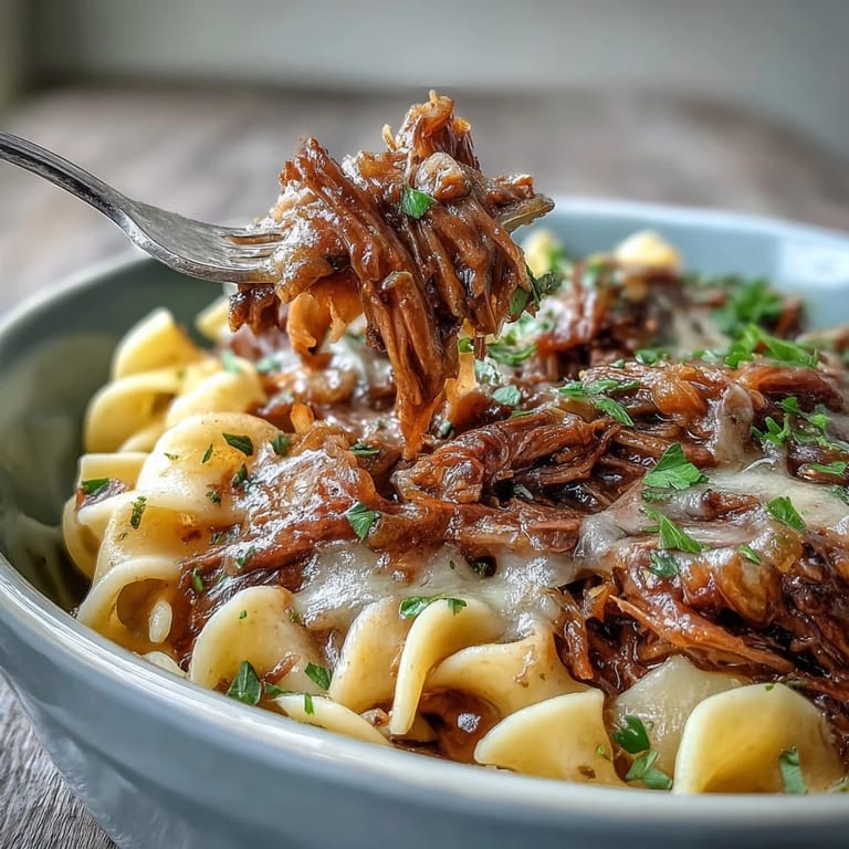 Pin it My neighbor brought over a casserole dish one winter evening, and inside was this gorgeous tangle of egg noodles drowning in the most luxurious beef and onion sauce I'd ever seen. She mentioned it was made in a crockpot while she was at work, and I remember thinking: how is this even possible? Years later, I finally understood the magic—it's all about patience and letting the slow cooker do what it does best, turning humble chuck roast and sweet onions into something that tastes like it simmered for a weekend.