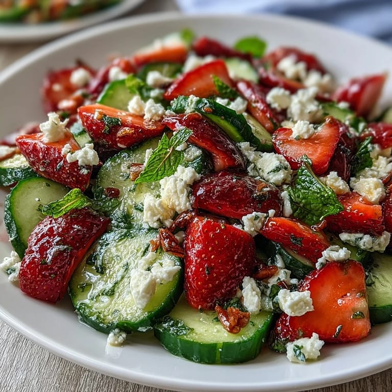 Pin it Last spring, I was rushing to put together lunch for friends dropping by unannounced, and I grabbed whatever looked bright in the crisper drawer—cucumber, strawberries, mint. What tumbled into the bowl felt less like a plan and more like happy accident, but when that first bite hit, with cool crunch meeting sweet berry juice and that peppery mint finish, I realized I'd stumbled onto something magic. It's the kind of salad that tastes like the season itself, no fuss required.