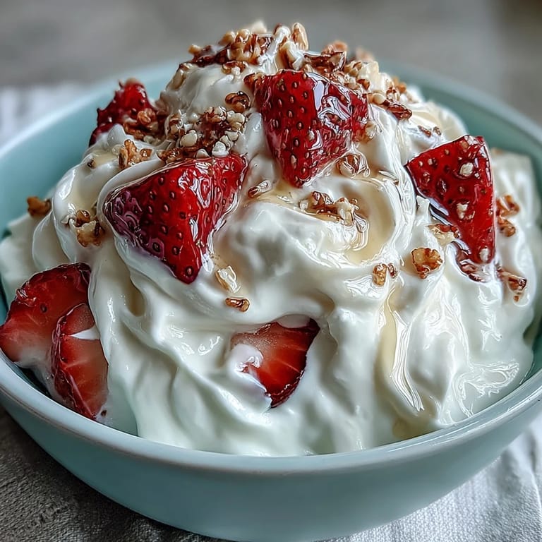 Pin it There's something almost meditative about whipping Greek yogurt on a quiet morning, watching it transform from dense and serious into something cloud-like and forgiving. I discovered this bowl on one of those mornings when I had overcommitted myself to too many things, and I needed breakfast to be simple but feel like self-care. The strawberries catch the light differently when they sit on fluffy yogurt, and somehow that made all the difference.