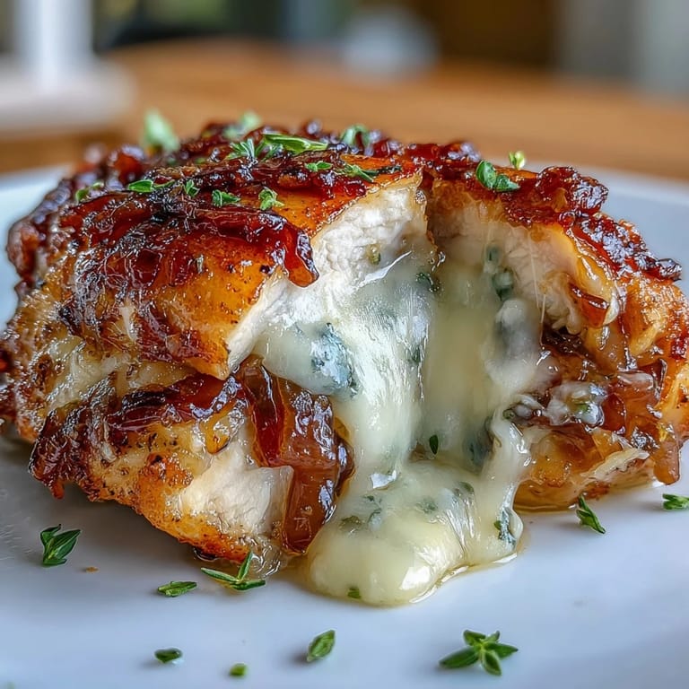 Pin it Bring the sophisticated and comforting flavors of classic French onion soup to your dinner table with these French Onion Stuffed Chicken Breasts. This dish features juicy, tender chicken filled with sweet, slow-cooked caramelized onions and melted Gruyère cheese, creating a rich and savory meal that is perfect for any occasion.