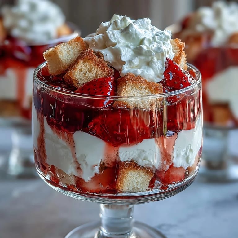 Pin it There's something about assembling a trifle that feels like you're building edible art, layer by layer, knowing exactly what magic happens when tender shortcake meets macerated strawberries and clouds of whipped cream. My friend Sarah brought this to a Valentine's dinner I hosted, and watching everyone's faces light up as they dug past the pristine surface to discover all those hidden pockets of flavor made me realize this dessert does more than satisfy cravings—it creates moments. The beauty of it is deceptive in its simplicity; you're really just combining three straightforward components into something that tastes like you spent hours fussing when honestly, you barely spent half one.