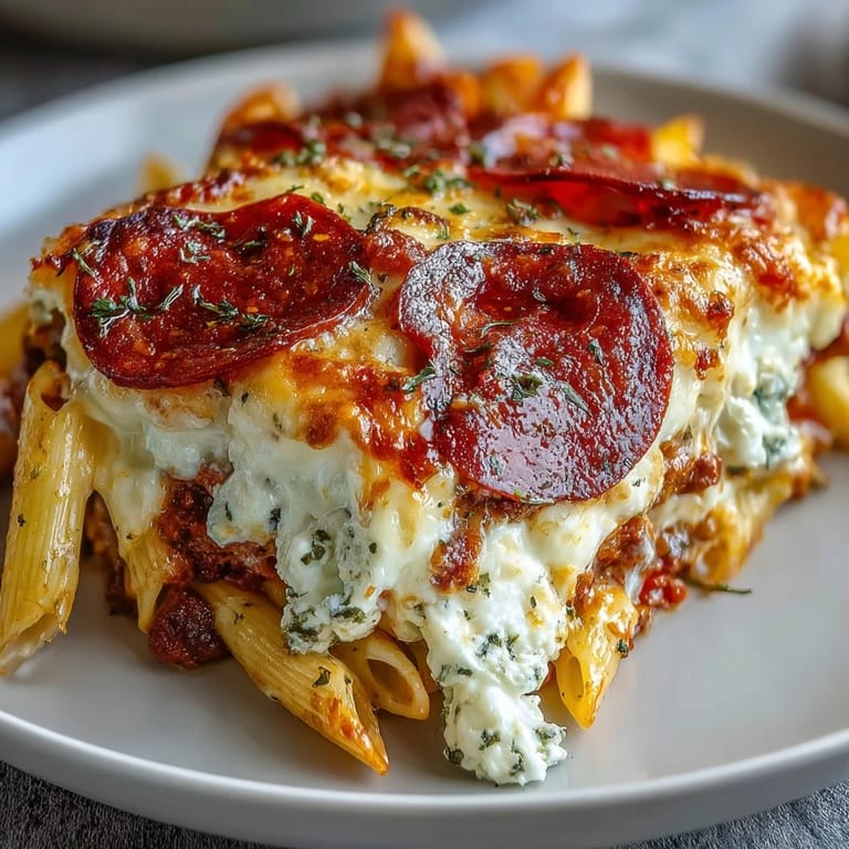 Pin it My brother called one Tuesday asking if I could whip up something that wasn't chicken breast for the fifth time that week. He was deep into his fitness phase, and I was tired of watching him eat the same bland meals. That's when this pizza pasta bake happened—a moment of rebellion in my kitchen where I thought, what if we took everything delicious about pizza night and made it actually good for you? The result was so comforting and packed with protein that even I stopped pretending it was just for him.