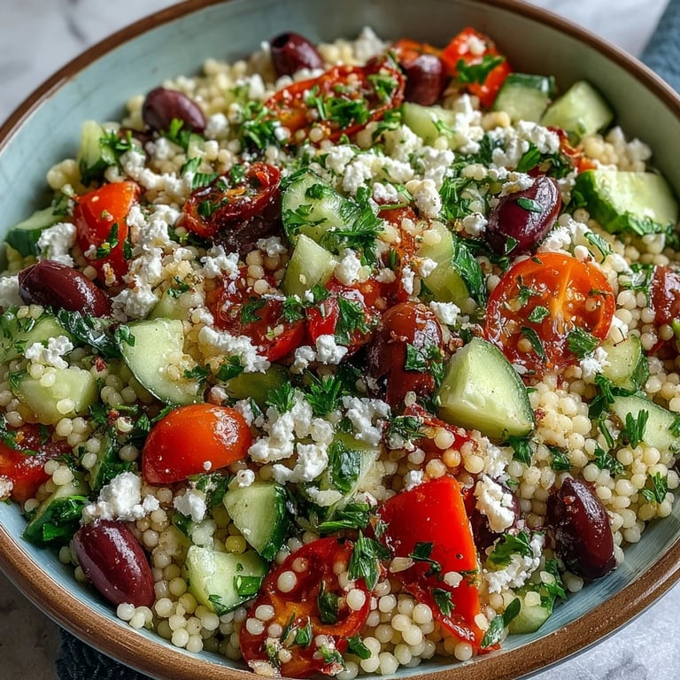 Pin it I was rummaging through my pantry one Tuesday afternoon, staring at a jar of pearl couscous I'd bought on a whim, when the idea struck. I'd been craving something fresh but satisfying, light yet filling enough to count as lunch. Within minutes, I had the pot bubbling and vegetables scattered across my cutting board, and before I knew it, the kitchen smelled like a coastal café I'd once visited in Crete. That spontaneous experiment became my go-to whenever I need color, crunch, and comfort all in one bowl.