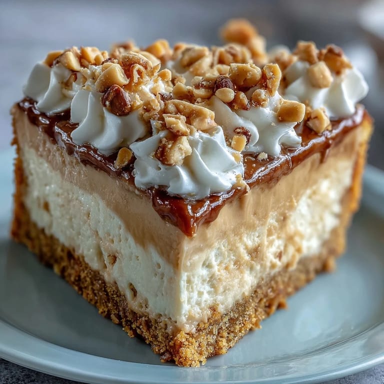 Pin it My neighbor brought over a slice wrapped in foil one Saturday morning, still cold from her fridge. She didn't say much, just grinned and told me to try it before asking questions. One bite in, I was texting her for the recipe while still chewing. The peanut butter wasn't just mixed in, it was everywhere, sweet and salty and impossibly creamy against that cookie crust that tasted like childhood snack time grown up.