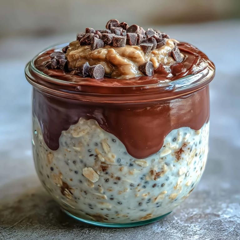 Pin it One rushed Tuesday morning, I stood in front of my open fridge knowing I had exactly three minutes before heading out, and somehow the answer was staring back at me: oats, peanut butter, and chocolate. What started as pure desperation became the breakfast I now make every Sunday night, because there's something deeply satisfying about preparing tomorrow's indulgence when you're calm and unhurried. The beauty of overnight oats is that they ask almost nothing of you in the moment, yet deliver something that tastes like you've been planning it all along.