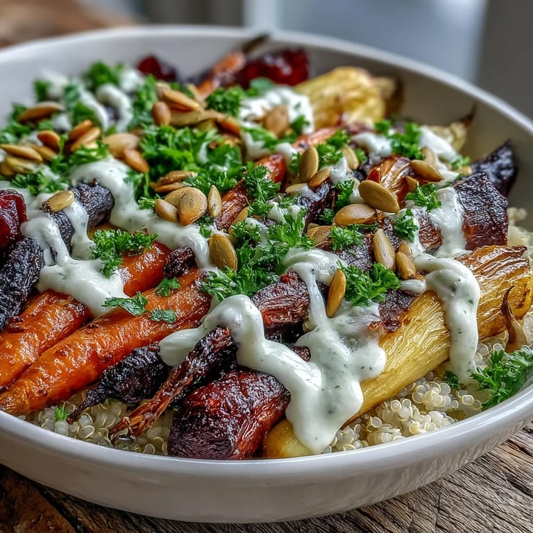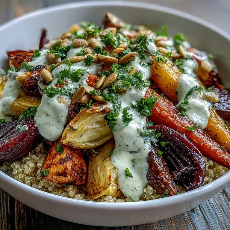 Pin it There's something almost meditative about chopping root vegetables on a lazy Sunday afternoon—the way each piece tumbles into the bowl, earthy and honest. I stumbled onto this roasted root vegetable bowl during one of those seasons when my fridge was overflowing with farmer's market finds and I had zero inspiration beyond wanting something warm and satisfying. The result felt like an accident in the best way: golden caramelized vegetables piled onto fluffy quinoa, drizzled with tahini sauce that tastes far more luxurious than its five ingredients deserve.