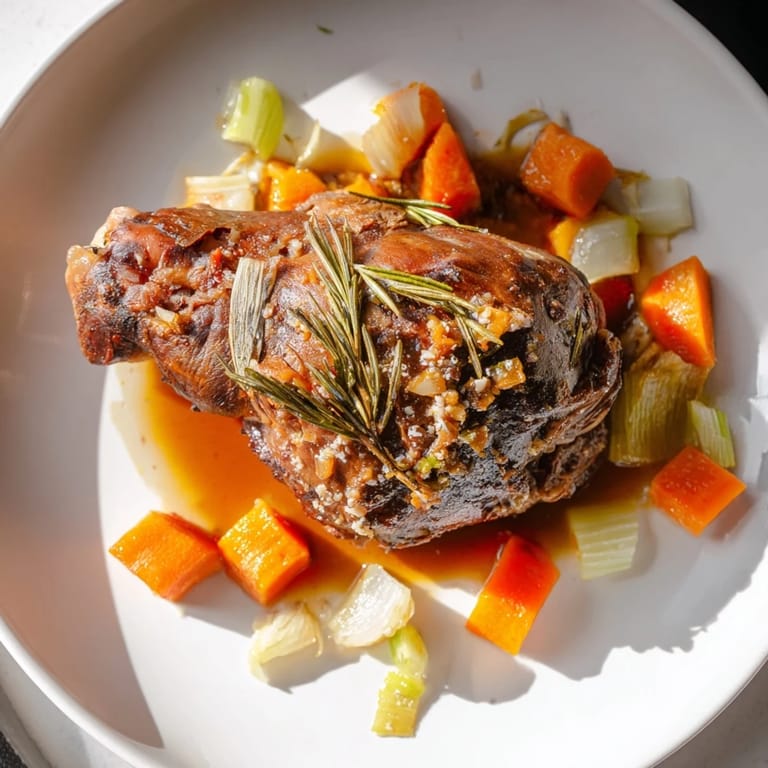 Pin it The kitchen smelled like a winter forest the first time I tucked rosemary sprigs around those lamb shanks. I was nervous about the long roasting time, convinced I'd somehow dry them out, but my neighbor insisted slow heat was the secret. Three hours later, the meat practically slid off the bone, and I understood why people plan entire dinners around a single pot. That evening taught me patience tastes better than I ever imagined.