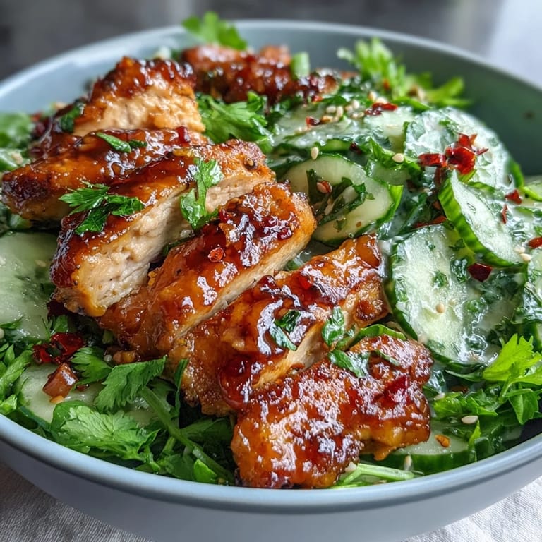 Once you nail the basic formula, this dish becomes a canvas for whatever you have in your fridge. I've added shredded carrots and sliced radishes for extra crunch, swapped the chicken for crispy tofu when I wanted something lighter, and even tried it with leftover roasted vegetables. The creamy cucumber salad and chili crisp are the real anchors—everything else can dance around them.