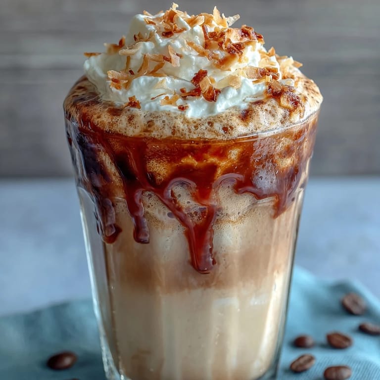 Pin it This decadent frappuccino blends rich brewed coffee with creamy milk and vanilla, all perfectly chilled and frothy. The highlight is the velvety toasted coconut foam, which elevates the drink into a luxurious treat. Whether you enjoy it as a morning pick-me-up or an afternoon indulgence, this recipe brings café-quality magic to your home.