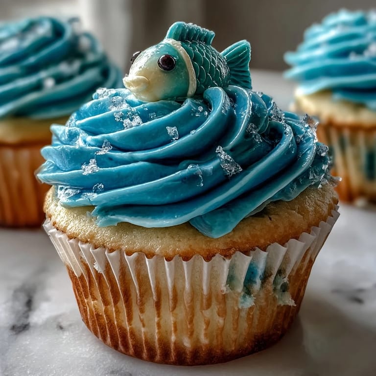 Pin it The magic of these cupcakes lies in the details. While the vanilla cupcake itself is wonderfully moist and tender, it's the artful fondant fish that transform them into something truly special. Each little fish can be shaped and colored uniquely—vibrant blues, cheerful greens, sunny oranges, and soft yellows—creating a school of edible art that captures the playful essence of the Pisces constellation. The blue buttercream frosting swirls like gentle waves, providing the perfect aquatic backdrop for your fondant creations to shine.